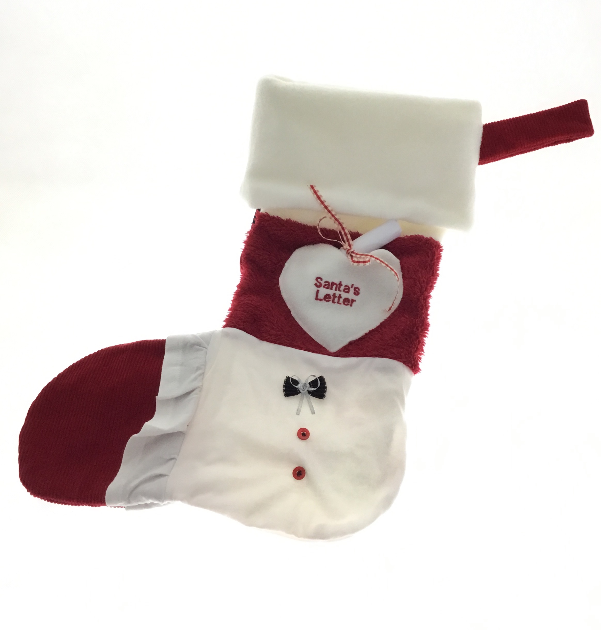 The price includes 15 embroidered characters for your preferred name. And there is also the most important pocket of were santa’s letter is placed for Santa to collect. Each stocking requires the equivalent of 4-6 baby grows. The top part of the stocking and the santa’s heart pocket are made from winter white fleece.